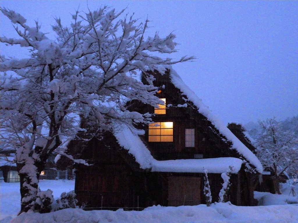 白川郷が本領を発揮するのは黄昏の後、夜の帳が