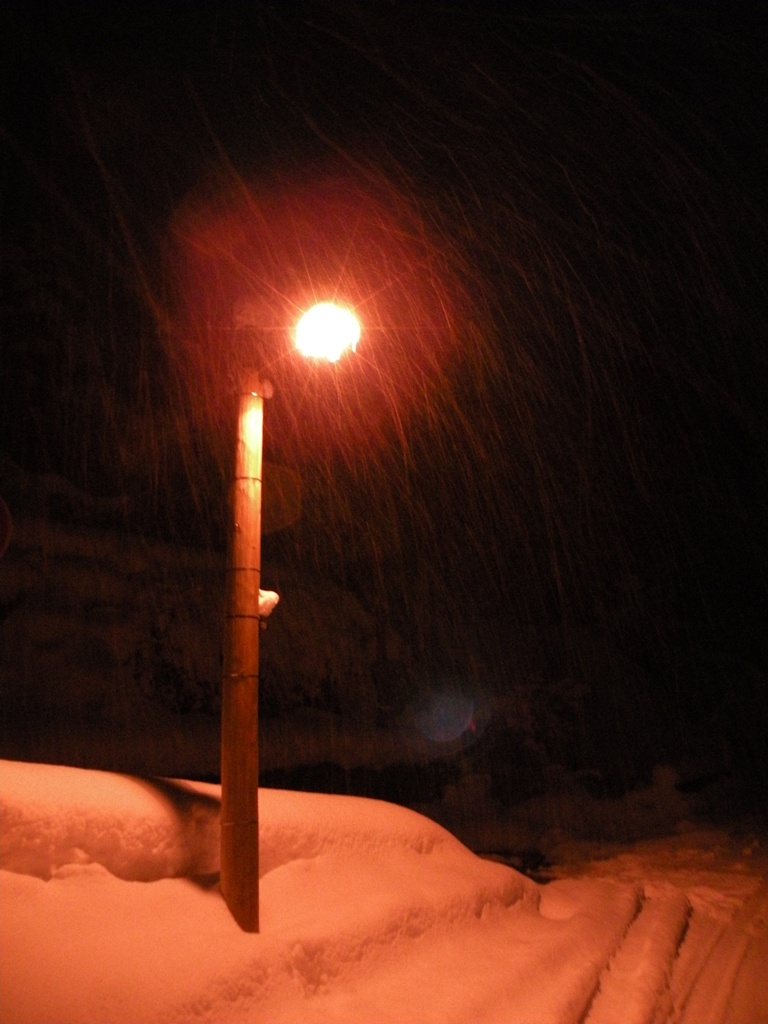 仄かに紅い光が雪に映えて、