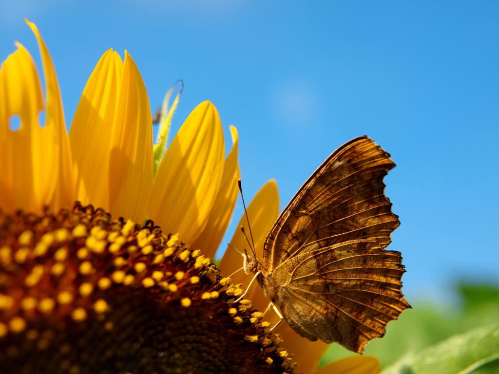 向日葵にとまるコノハチョウ。