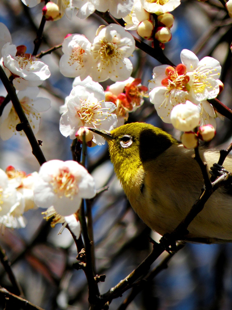 梅の花を撮っていたら一羽の鶯(※)が・・・