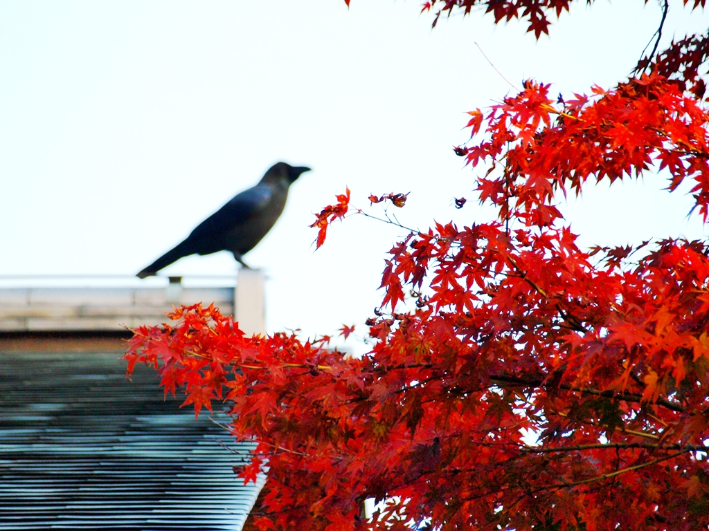 孤独な鳥が、屋根の上に留まる。